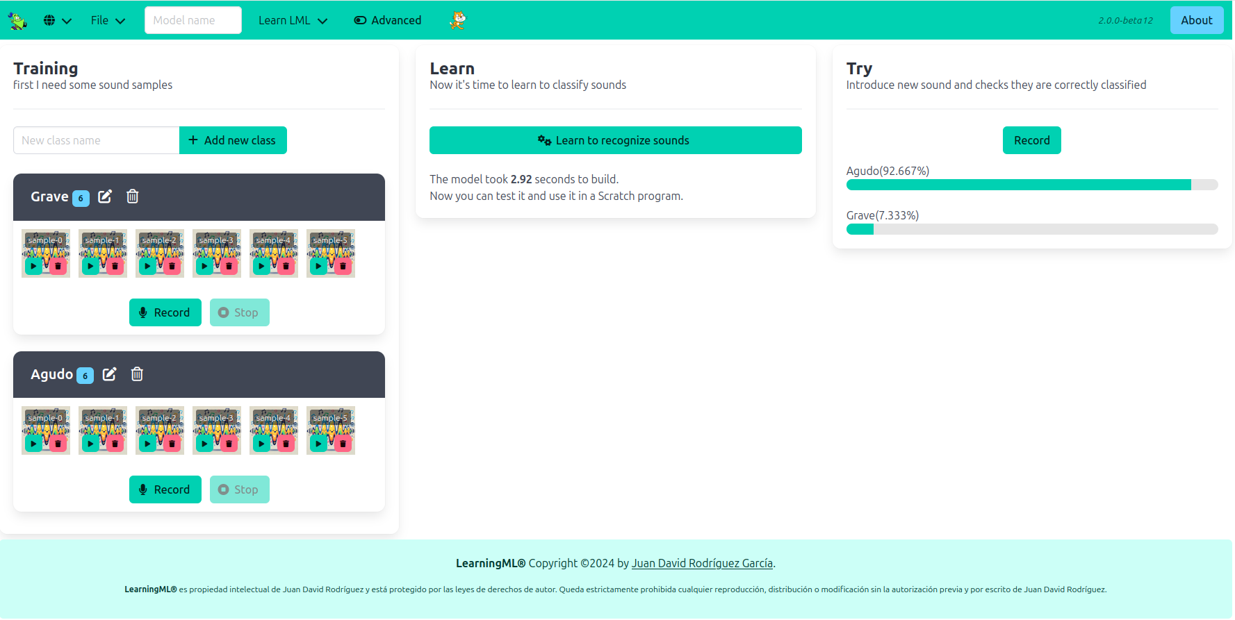 Vas a entrenar una IA en LearningML para que reconozca si un sonido es agudo o grave usando grabaciones hechas por vosotros.