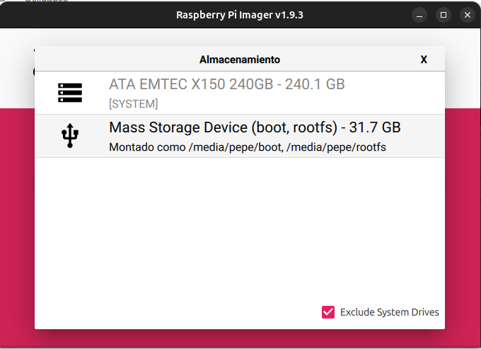 - Abre Raspberry Pi Imager en el ordenador.
