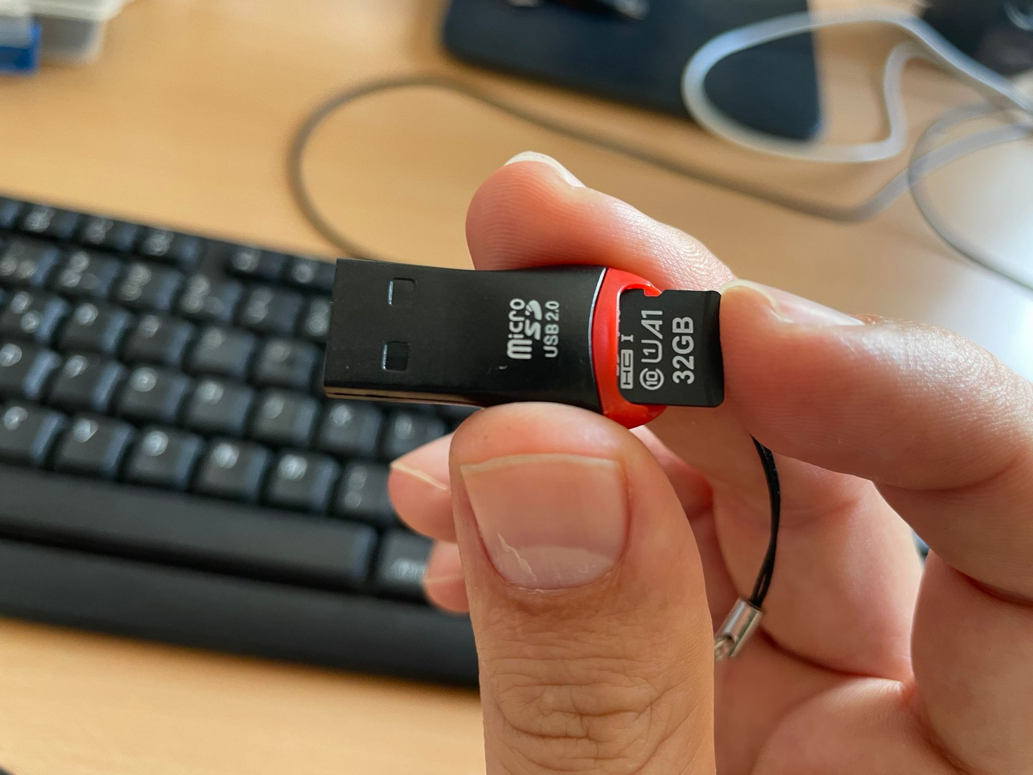 - Saca la tarjeta microSD de la Raspberry. Ahora deberás utilizar un adaptador (tarjeta o USB) para conectar la tarjeta al equipo. En los portátiles podréis usar la tarjeta, y en los ordenadores de sobremesa (los del aula) un USB.