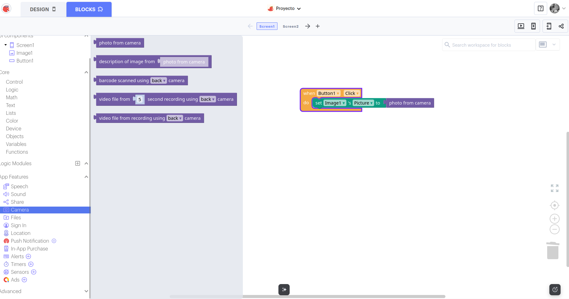Usar la cámara (En Blocks)