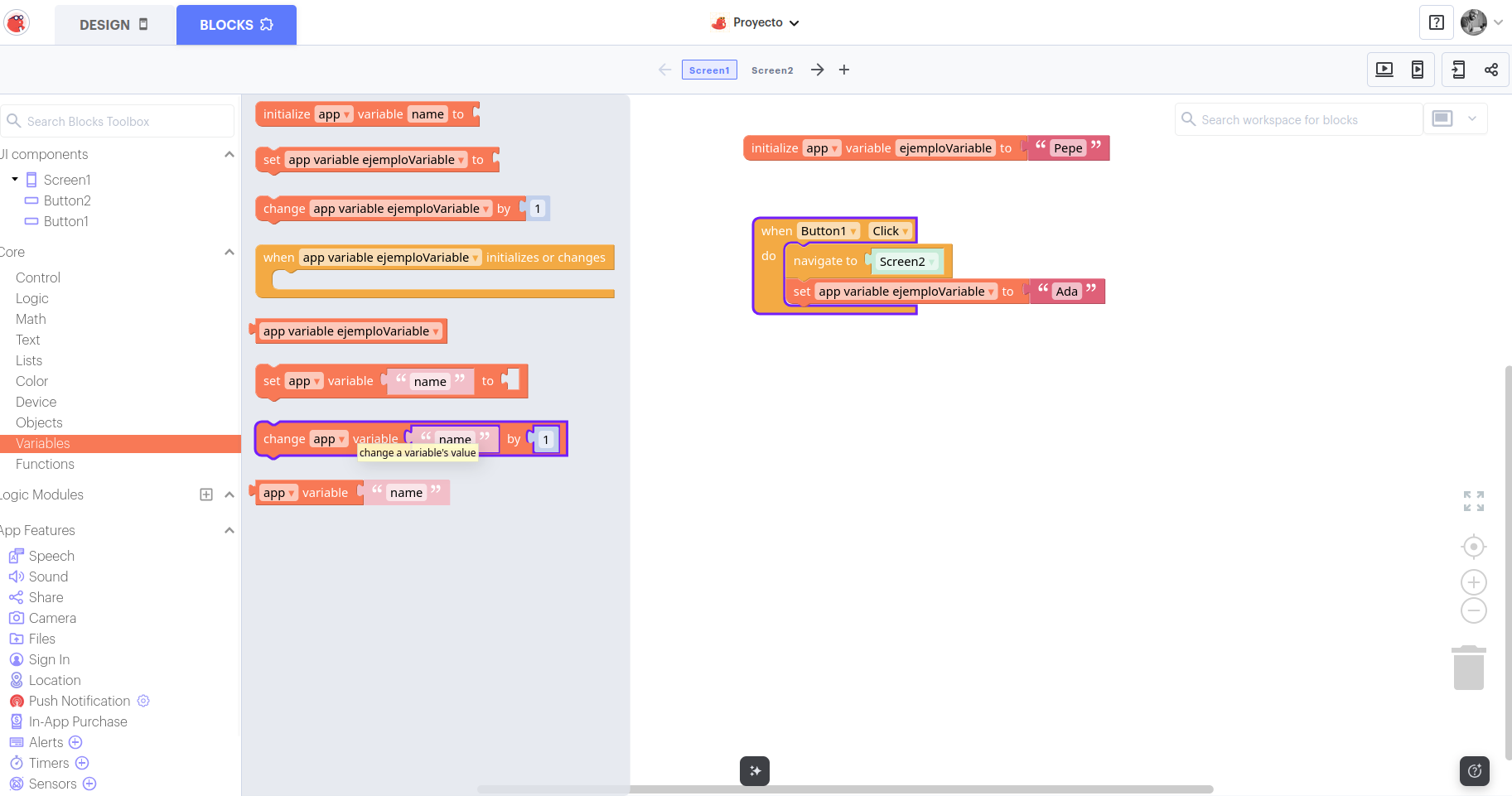 - En Blocks → Variables
