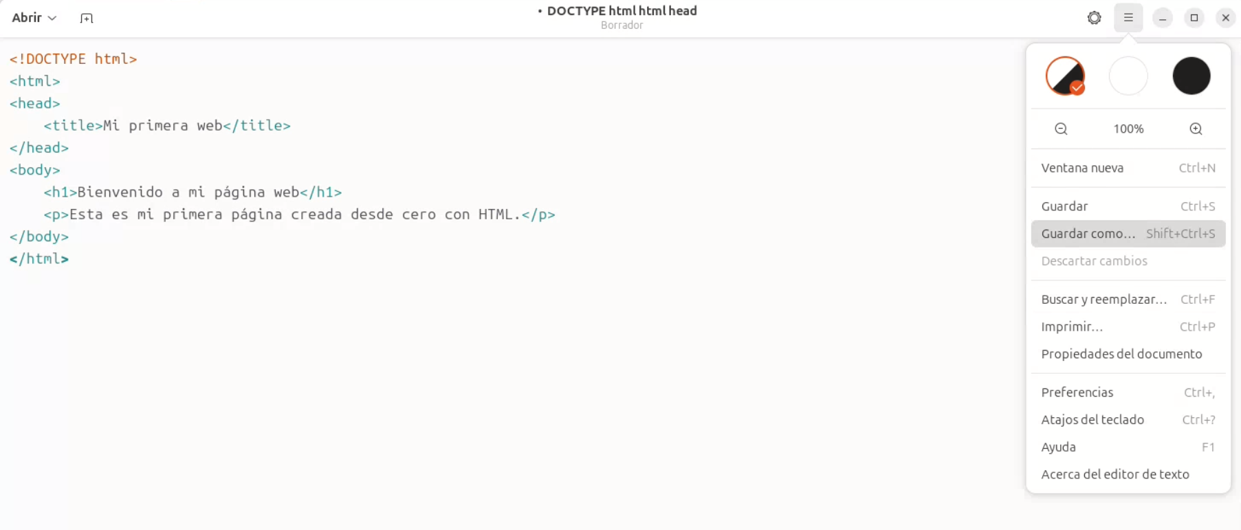 Vamos a hacer algo muy potente: crear una página web desde cero, solo con el Editor de texto. Sin programas mágicos, sin plantillas. Solo tú y el código. Y créeme, cuando veas que funciona… engancha 😎